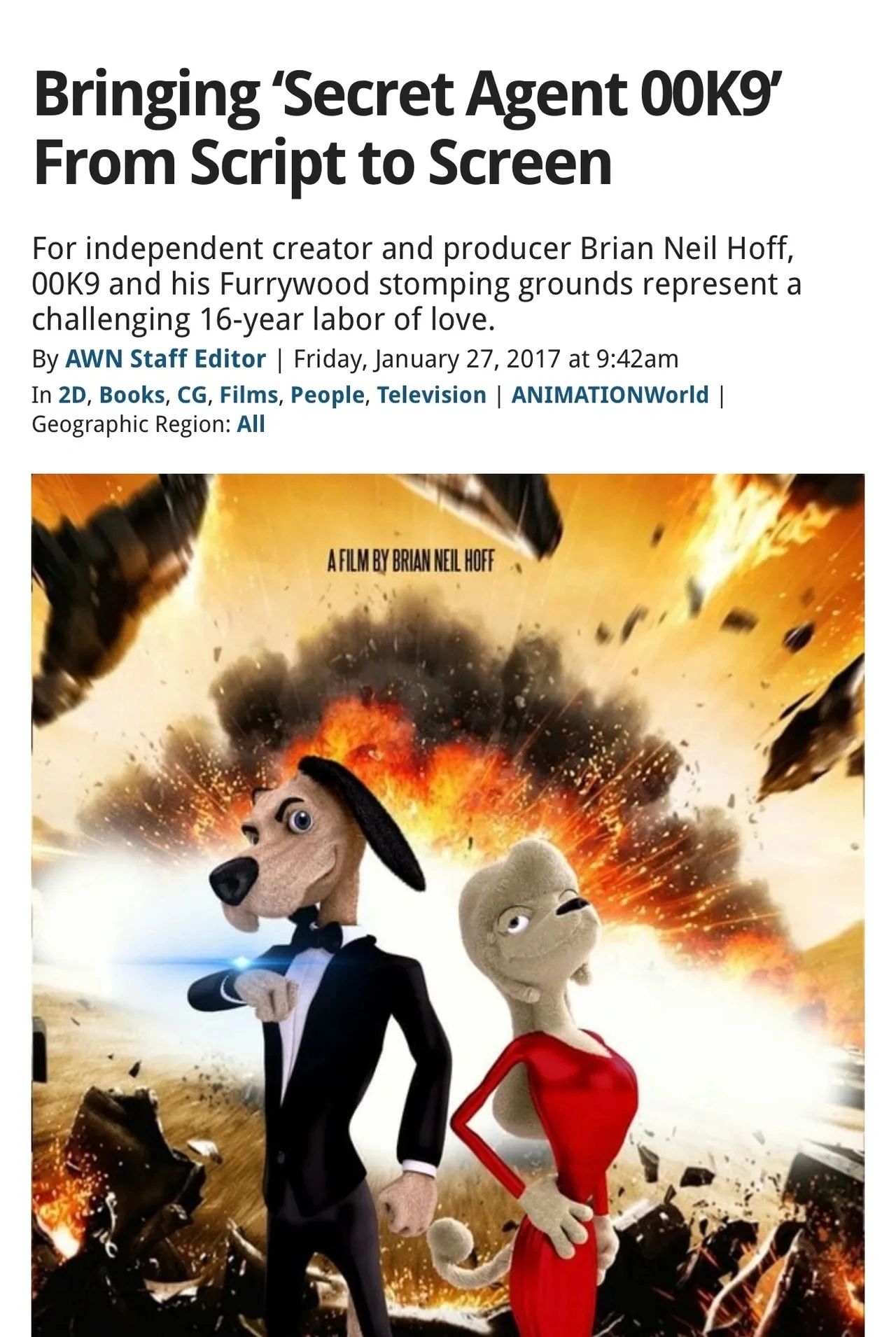 Synopsis: Spy dog detective Agent 00K9 and poodle actress Tinky Bigmoore work together to solve a mystery in the bustling anthropomorphic mult-speanimal city of Furrywood. The buddy spy dogs encounter strange animals who provide them clues as they use their sly detective abilities and specially made spy dog equipment to embark on a crazy investigation. Coming Soon!